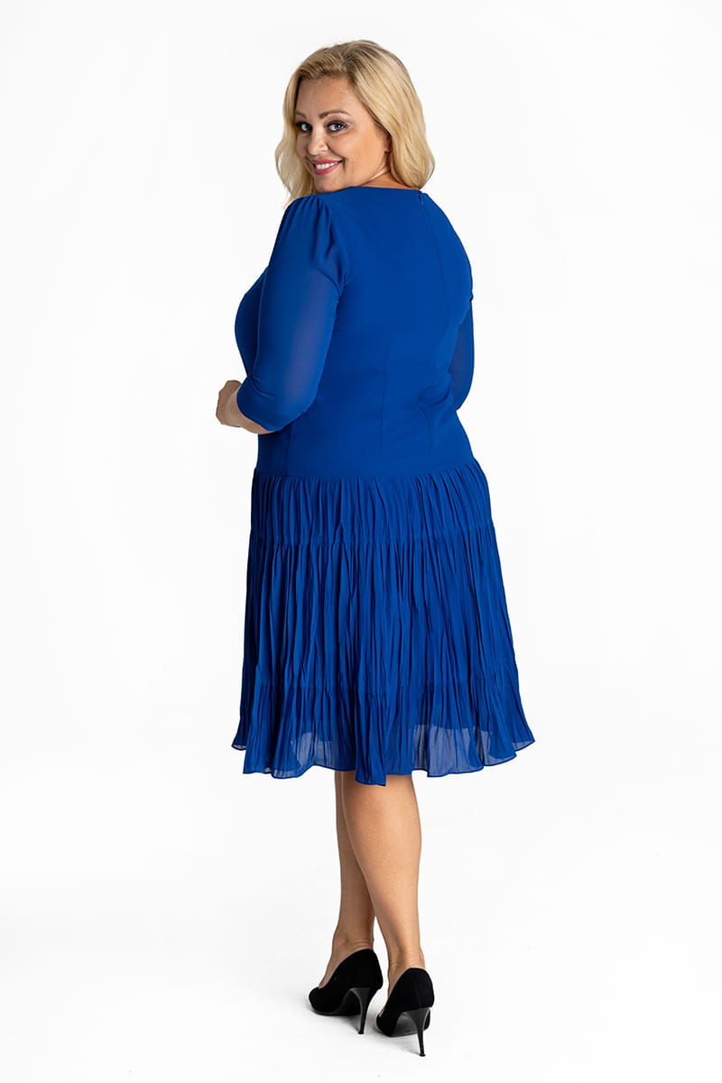 WERA to sukienka z szyfonu w całkiem nowej odsłonie. Model do tańca i do różańca, piękna, rozkloszowana, lekka i zwiewna. Dół sukienki pięknie układa się przy każdym ruchu dzięki temu, że uszyty został z marszczonych falban, a całość poddano fabrycznemu kreszowaniu.