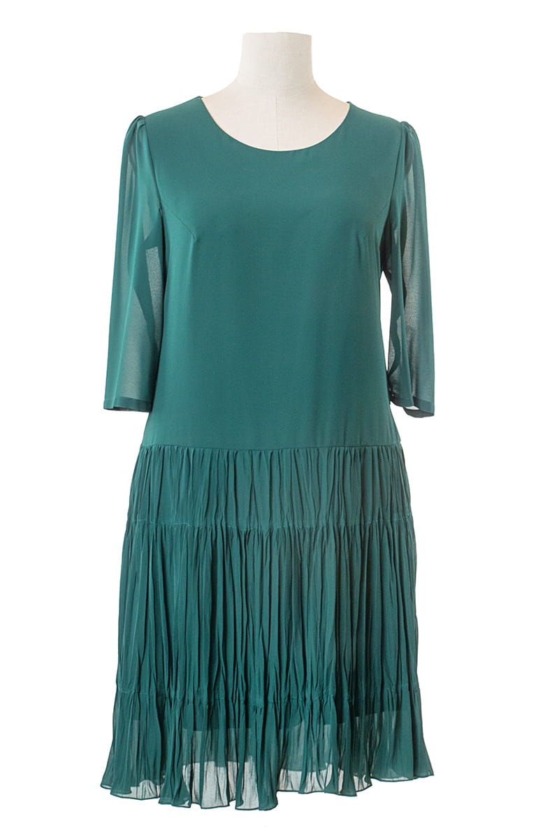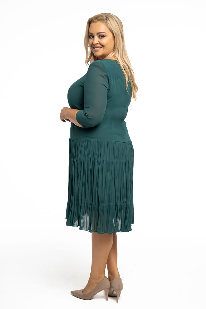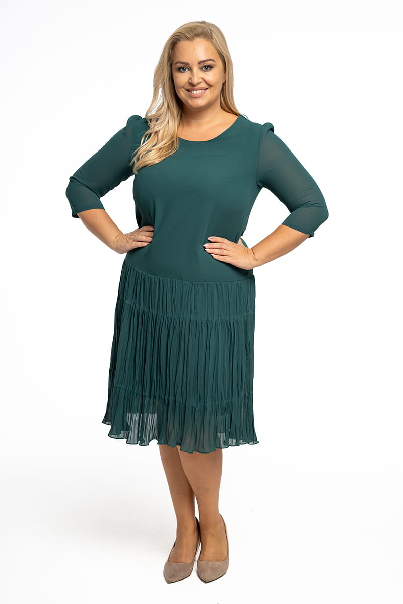 WERA to sukienka z szyfonu w całkiem nowej odsłonie. Model do tańca i do różańca, piękna, rozkloszowana, lekka i zwiewna. Dół sukienki pięknie układa się przy każdym ruchu dzięki temu, że uszyty został z marszczonych falban, a całość poddano fabrycznemu kreszowaniu.