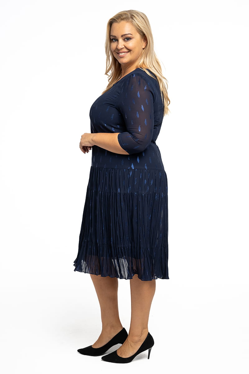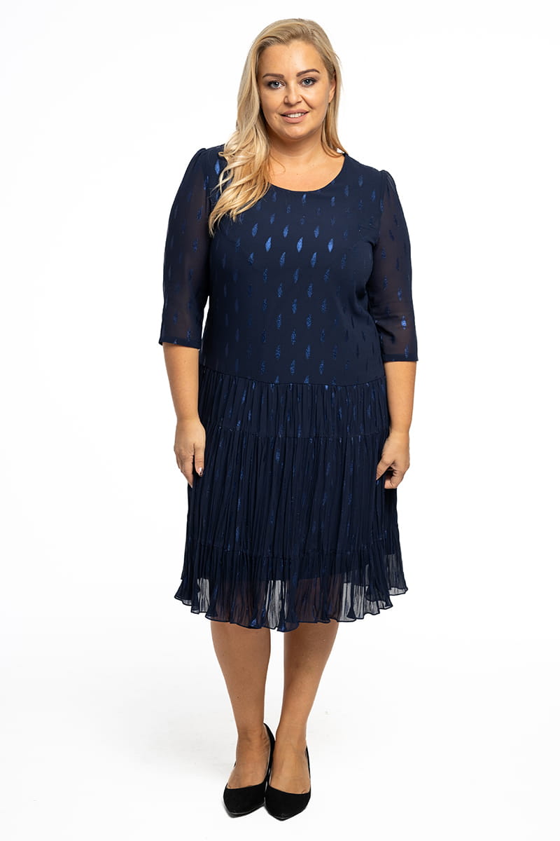 WERA to sukienka z szyfonu w całkiem nowej odsłonie. Model do tańca i do różańca, piękna, rozkloszowana, lekka i zwiewna. Dół sukienki pięknie układa się przy każdym ruchu dzięki temu, że uszyty został z marszczonych falban, a całość poddano fabrycznemu kreszowaniu.