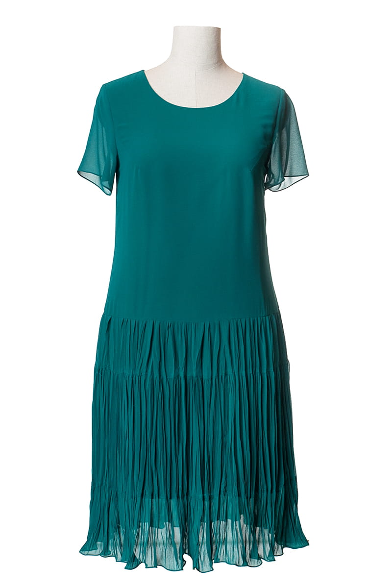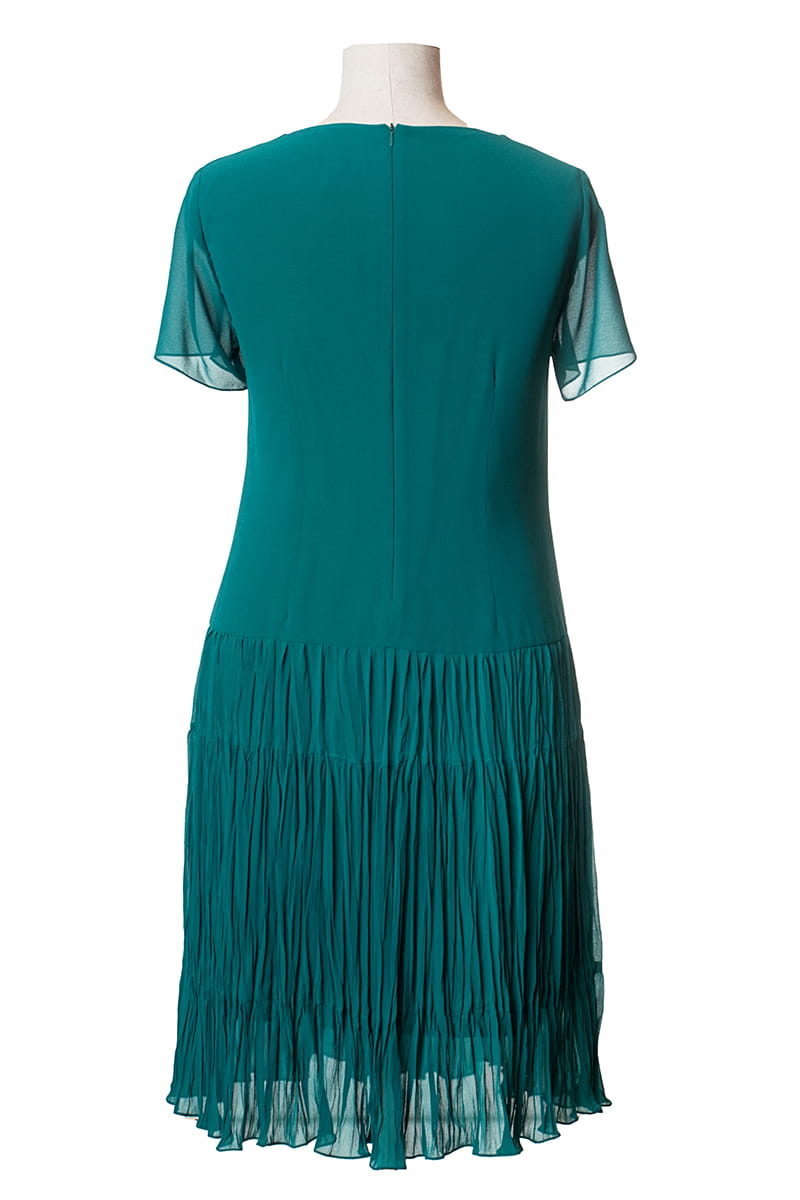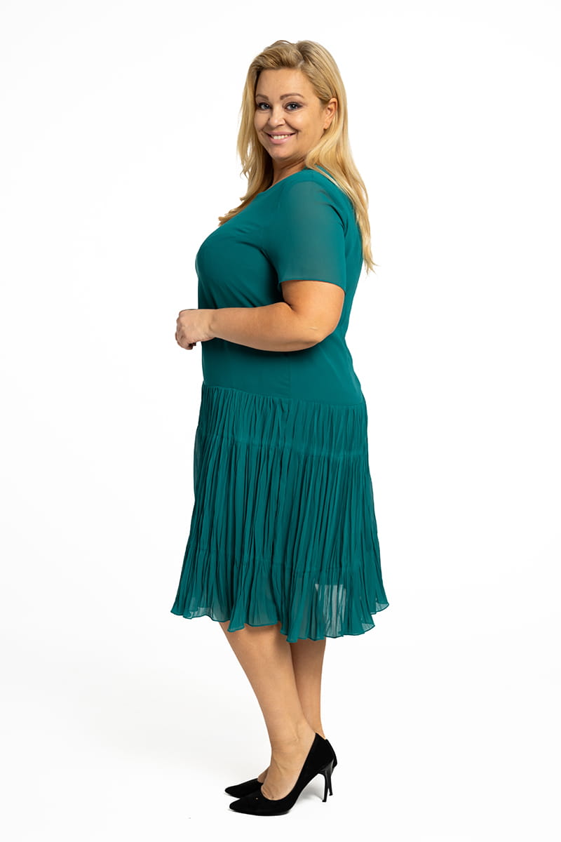 WERA to sukienka z szyfonu w całkiem nowej odsłonie. Model do tańca i do różańca, piękna, rozkloszowana, lekka i zwiewna. Dół sukienki pięknie układa się przy każdym ruchu dzięki temu, że uszyty został z marszczonych falban, a całość poddano fabrycznemu kreszowaniu.