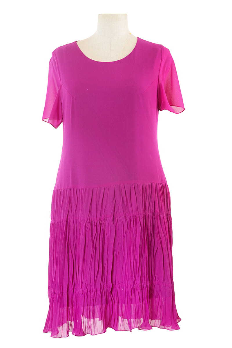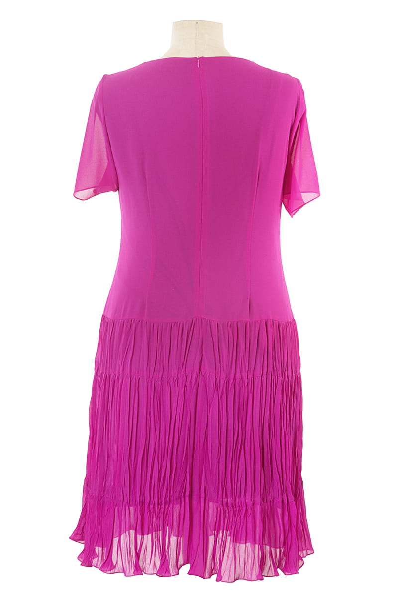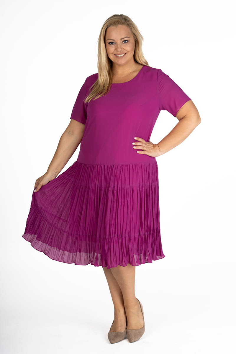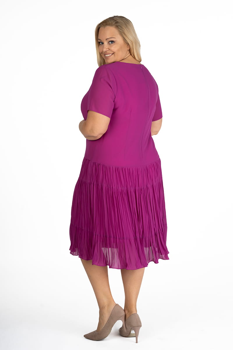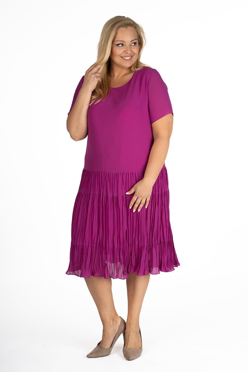 WERA to sukienka z szyfonu w całkiem nowej odsłonie. Model do tańca i do różańca, piękna, rozkloszowana, lekka i zwiewna. Dół sukienki pięknie układa się przy każdym ruchu dzięki temu, że uszyty został z marszczonych falban, a całość poddano fabrycznemu kreszowaniu.