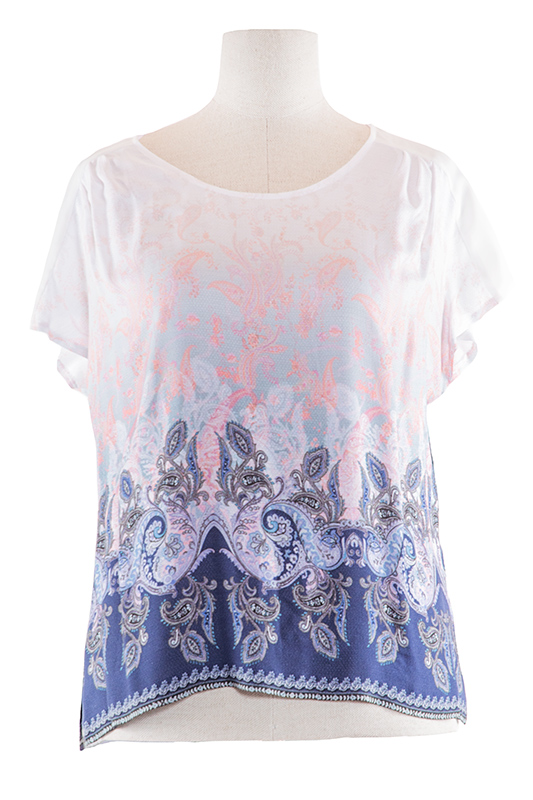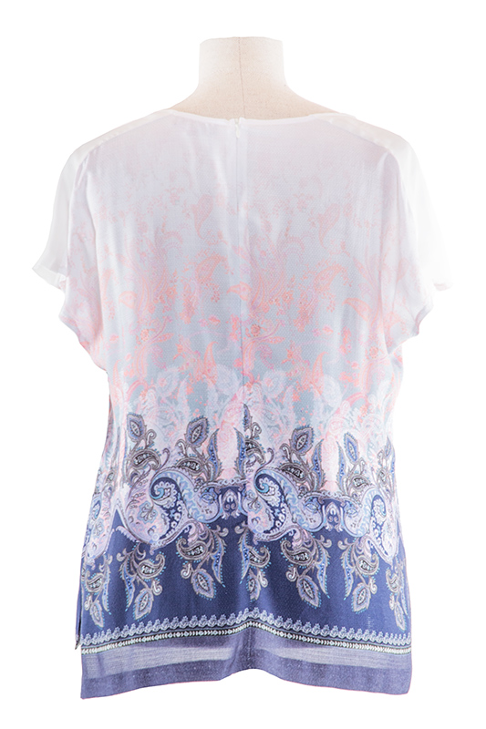 Luźna tunika bez podszewki z cienkiej przewiewnej nie rozciągliwej tkaniny. Karczki wykonane z szyfonu.