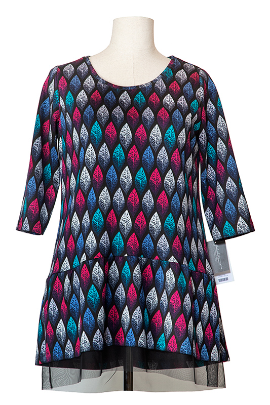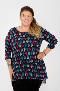 Tunika Didi to dziewczęca propozycja dla każdej tęczowej osobowości. Wysokiej jakości dzianina w kolorowe liście to idealny motyw na rozpoczęcie Polskiej, złotej jesieni. Forma ukrywa niedoskonałości sylwetki. Model zakończono atrakcyjną, delikatną siateczką.