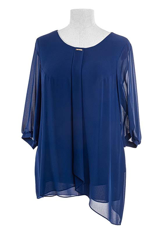 Ewela to asymetryczna tunika wykonana z szyfonu. Dzięki efektownej fałdzie na całej długości przodu wydłuża i optycznie wyszczupla sylwetkę. w tej tunice będziesz prezentować się stylowo niezależnie od okazji, na którą ją założysz.
