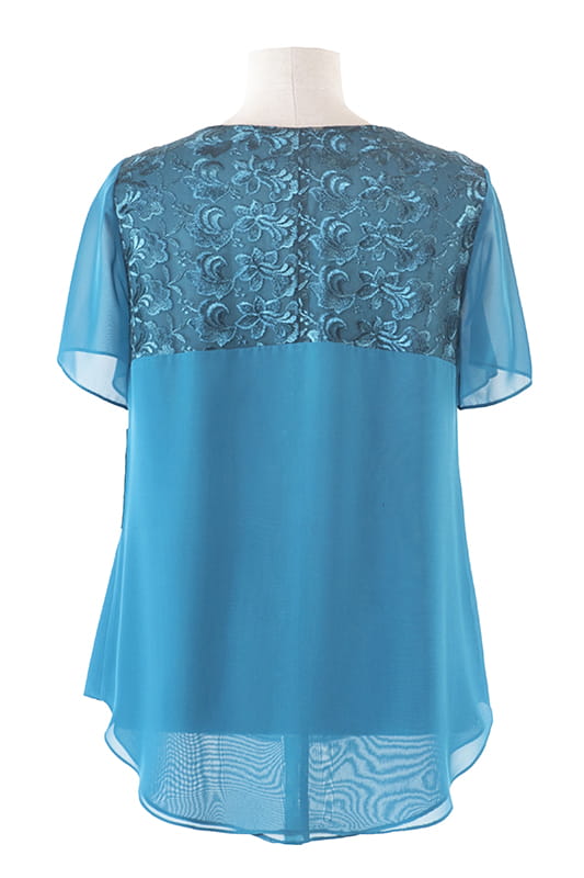 Ignacja wykonana jest z podwójnej warstwy szyfonu, w bogatej gamie kolorystycznej. Okrągły dekolt oraz koronkowy karczek nadaje jej delikatności. Doskonały model na wyjątkowe okazje.