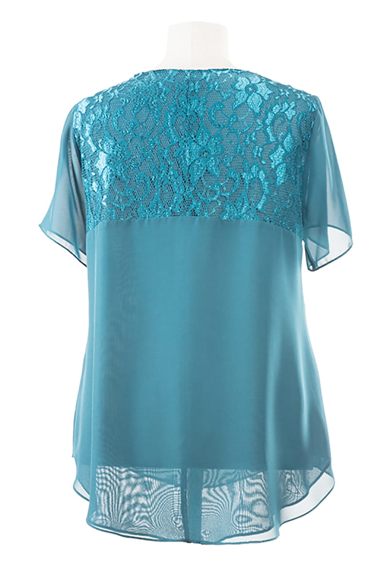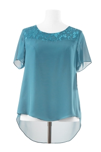 Ignacja wykonana jest z podwójnej warstwy szyfonu, w bogatej gamie kolorystycznej. Okrągły dekolt oraz koronkowy karczek nadaje jej delikatności. Doskonały model na wyjątkowe okazje.