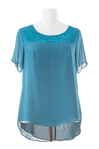 Ignacja wykonana jest z podwójnej warstwy szyfonu, w bogatej gamie kolorystycznej. Okrągły dekolt oraz koronkowy karczek nadaje jej delikatności. Doskonały model na wyjątkowe okazje.