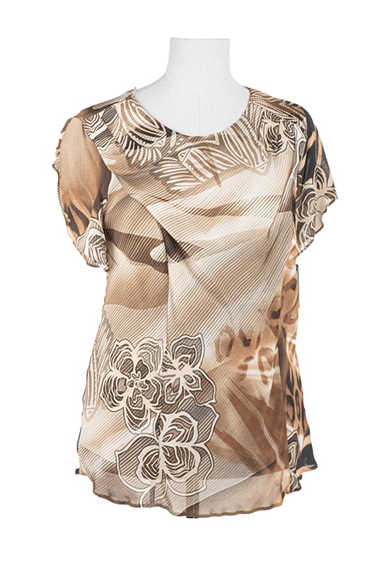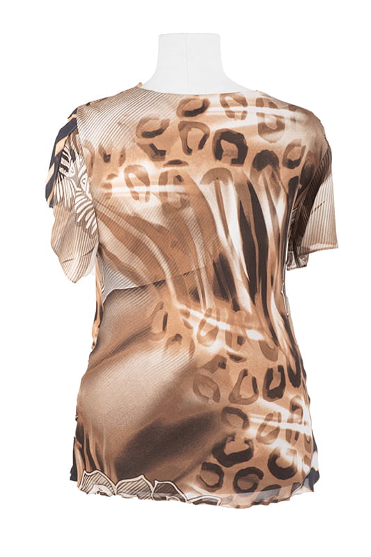 JESICA to wzorzysta letnia tunika. Jesica ma krótkie rękawki, swobodny fason i dekolt typu woda. Pięknie komponuje się zarówno ze spodniami jak i spódnicą.