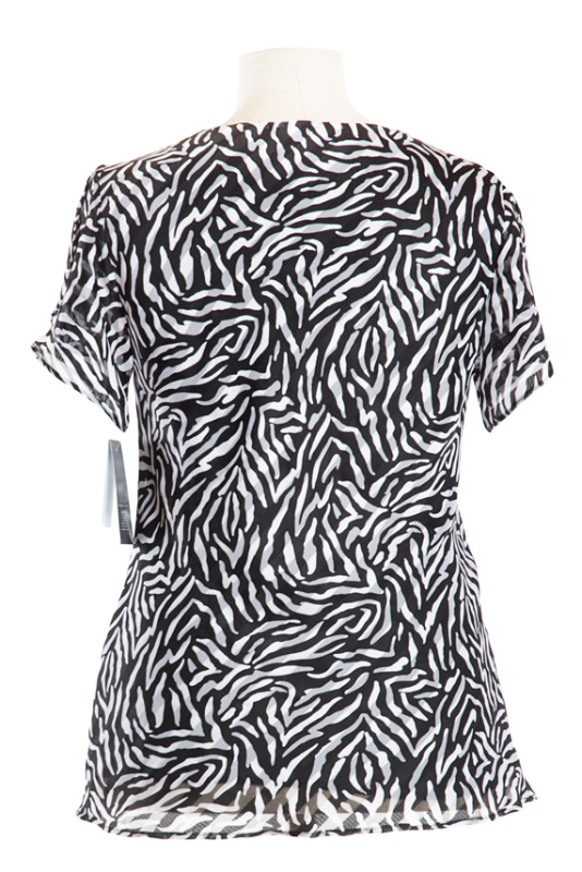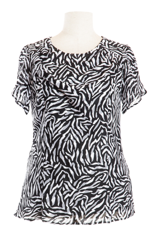 JESICA to wzorzysta letnia tunika. Jesica ma krótkie rękawki, swobodny fason i dekolt typu woda. Pięknie komponuje się zarówno ze spodniami jak i spódnicą.