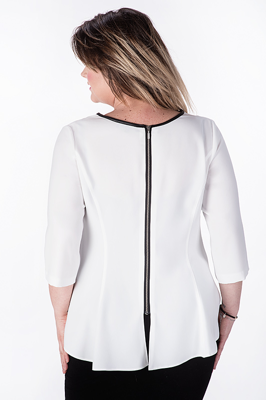 Wszystkie wielbicielki minimalizmu i prostoty form na pewno zachwycą się tym wyjątkowym modelem – tunika KAYLA ze stylową lamówką to wyjątkowa propozycja! Dekolt w kształcie litery V optycznie wysmukla sylwetkę, dzieło wieńczy gustowny suwak umieszczony w tylnej części.