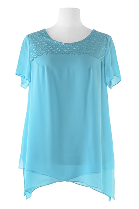 -okrągły dekolt -krótki rękawek -modne koronkowe wstawki