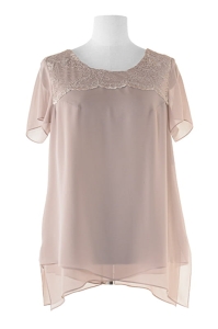 -okrągły dekolt -krótki rękawek -modne koronkowe wstawki