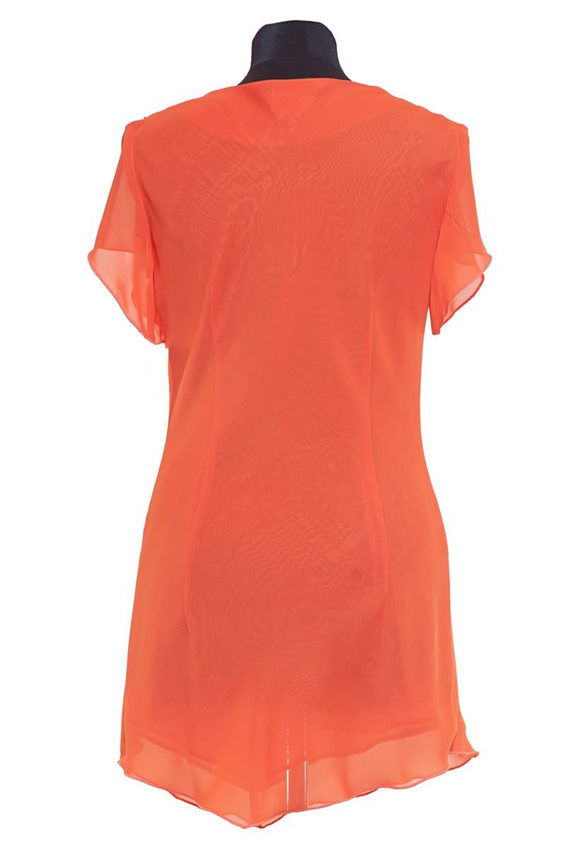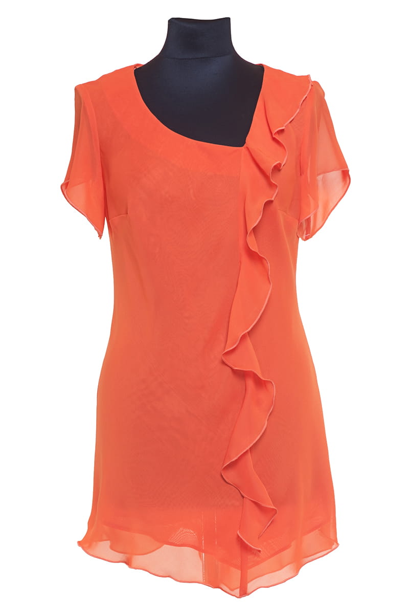 OTYLIA to efektowna, asymetryczna tunika. Otylia ma ma krótkie rękawki, dopasowany kobiecy krój i ozdobną falbankę z przodu. Fantastycznie uzupełni wiele letnich stylizacji.