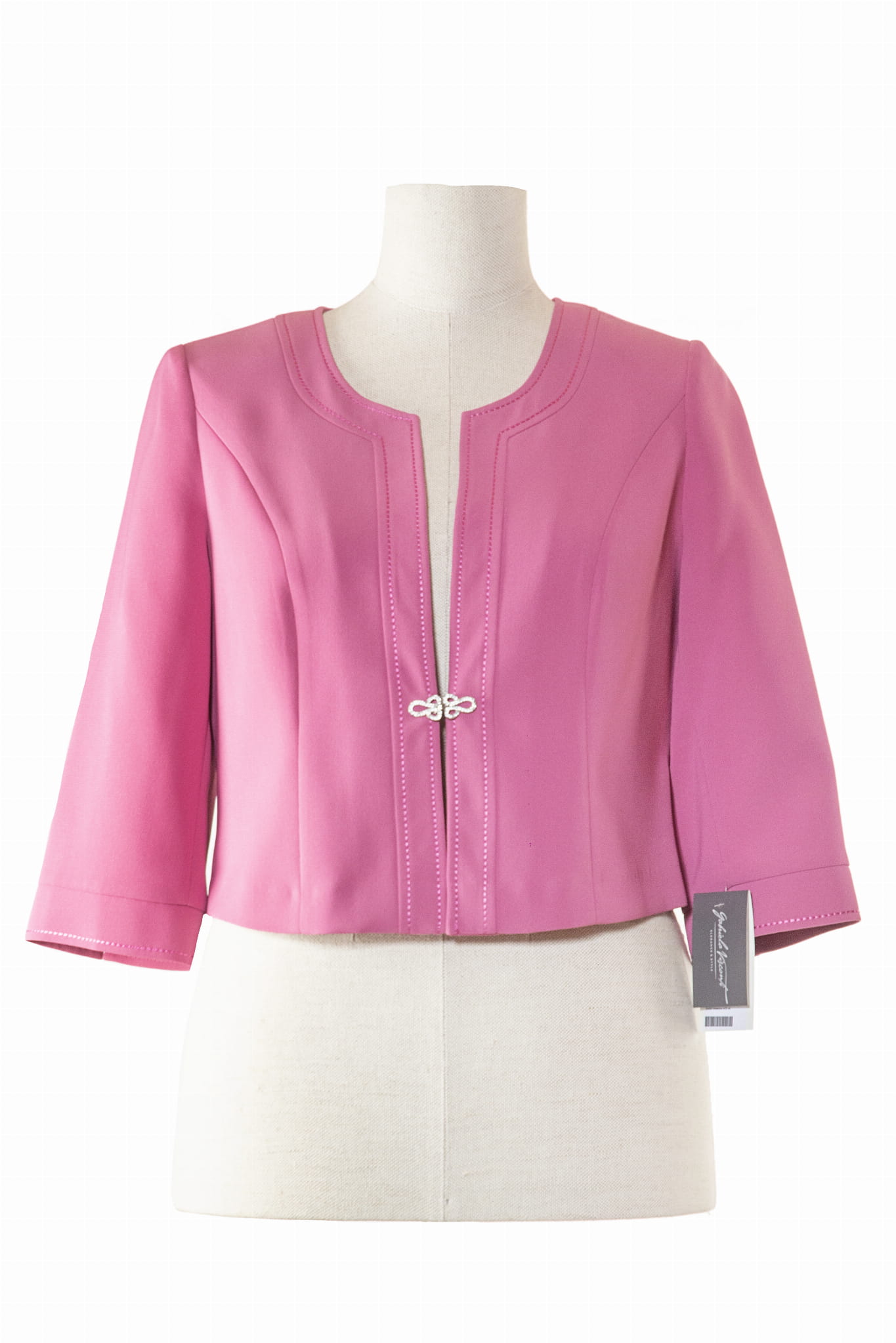 Klasyczny żakiet Ramona to idealny model do każdej sukienki. Wykonany z tkaniny „Merino”, która jest jedną z najszlachetniejszych tkanin dostępnych na rynku. Wspaniale dopasowuje się do ciała, ma rękaw 3/4 i jest zapinany na dwa guziki. Dodatkowymi ozdobnymi elementami są eleganckie stębnowania lasetą oraz tekstylny kwiat, przypięty do żakietu.