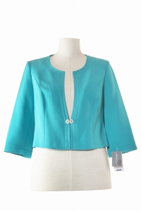 Klasyczny żakiet Ramona to idealny model do każdej sukienki. Wykonany z tkaniny „Merino”, która jest jedną z najszlachetniejszych tkanin dostępnych na rynku. Wspaniale dopasowuje się do ciała, ma rękaw 3/4 i jest zapinany na dwa guziki. Dodatkowymi ozdobnymi elementami są eleganckie stębnowania lasetą oraz tekstylny kwiat, przypięty do żakietu.